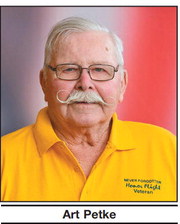 Petke got signed up for the trip through the help of his wife’s cousin, Dave Lucht, who lives in Loyal and is a veteran. After Lucht went on the Honor Flight several years ago, he and his wife Barb signed Petke up to go on the flight. That was around 2018.