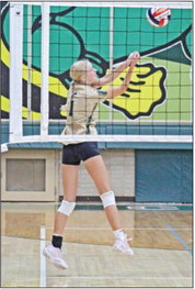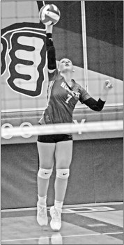 SERVING UP ACES - Tori Underwood unleashes another tough serve in the first set against Greenwood in Colby’s first home match of the season.