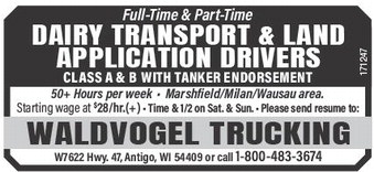 Full-Time & Part-Time DAIRY TRANSPORT & LAND APPLICATION DRIVERS