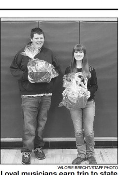 Sam Lathrop and Halle Aumann advanced to the state Solo and Ensemble competition after earning a starred first rating on their performances. Lathrop advanced for his piano solo and Aumann for her musical theater vocal solo. Lydia Vircks (not pictured) also advanced to state Solo and Ensemble for her musical theatre vocal solo and a German vocal solo.