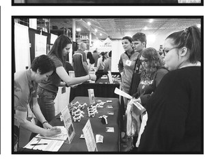 More than 400 middle and high school students from around Clark County attended the “Empowering Partnerships” business expo and career fair put on by the Clark County Economic Development Corporation (CCEDC) and Tourism Bureau May 3 at Clark Electric Cooperative just west of Greenwood. Close to 70 businesses were represented and students from Colby, Loyal, Owen-Withee, Greenwood, Stanley-Boyd and Neillsville schools attended. The event was not only for students to get a sampling of future careers they might enjoy, but also to provide business leaders the chance to network with other business and learn about services to help their businesses grow. “I saw lots of good interactions happening. I want students to see everything that goes into making a business successful,” said Sheila Nyberg, CCEDC executive director. Based on the lively conversations and the smiles on faces, it seemed the event proved beneficial for the many attendees. Photo captions: Top left, Pat Lindner of the Greenwood Area Chamber of Commerce and Greenwood city clerk Kayla Schar sign sheets for students. Students had to complete a “bingo” sheet with signatures from at least 16 different industries to receive a prize. Top middle, students talk with Clark Electric representatives. Top right, a student guesses which feed is which in a game, as Devon Langreck and Christina Johnson of ProVision Partners look on. To right, Linda Susa (background) and Roanne Ostmann (foreground) share about Prevail Bank. Bottom right, Wendy Bautch (foreground) and Brooke Pakala (background) of Grassland Dairy Products sign students’ bingo sheets. Below, students tour the Life Link III emergency medical flight helicopter.