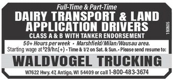 DAIRY TRANSPORT & LAND APPLICATION DRIVERS