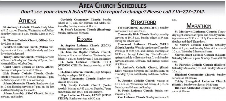 Don’t see your church listed? Need to report a change? Please call 715- 223- 2342. ATHENS