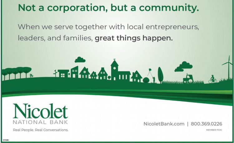 Not a corporation, Not a corporation, but a community. When we serve together with local entrepreneurs, leaders, and families, great things happen. Nicolet NATIONAL BANK NicoletBank.com I 800.369.0226 com | 800.369.0226 People. Real Conversations. Real People. Real Conversations. MEMBER FDIC member fdic 121848 Not a corporation, Not a corporation, but a community. When we serve together with local entrepreneurs, leaders, and families, great things happen. Nicolet NATIONAL BANK NicoletBank.com I 800.369.0226 com | 800.369.0226 People. Real Conversations. Real People. Real Conversations. MEMBER FDIC member fdic 121848